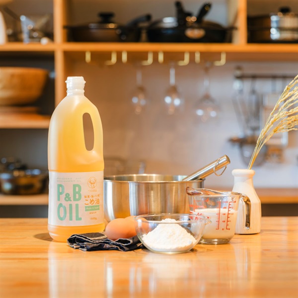 P&Bオイルは国産こめ油・逸品こめ油と同様に毎日のお料理にお役立ていただけます。クセやにおいがほとんどなく食材が本来持っている風味を活かしてくれるので、食材・調理方法を選ばず料理を美味しく仕上げてくれます。P&Bオイル自体は逸品こめ油と同じものです。パンやお菓子作りを楽しめるよう、キッチンに置いておいても映えるようなラベルにデザインしました。